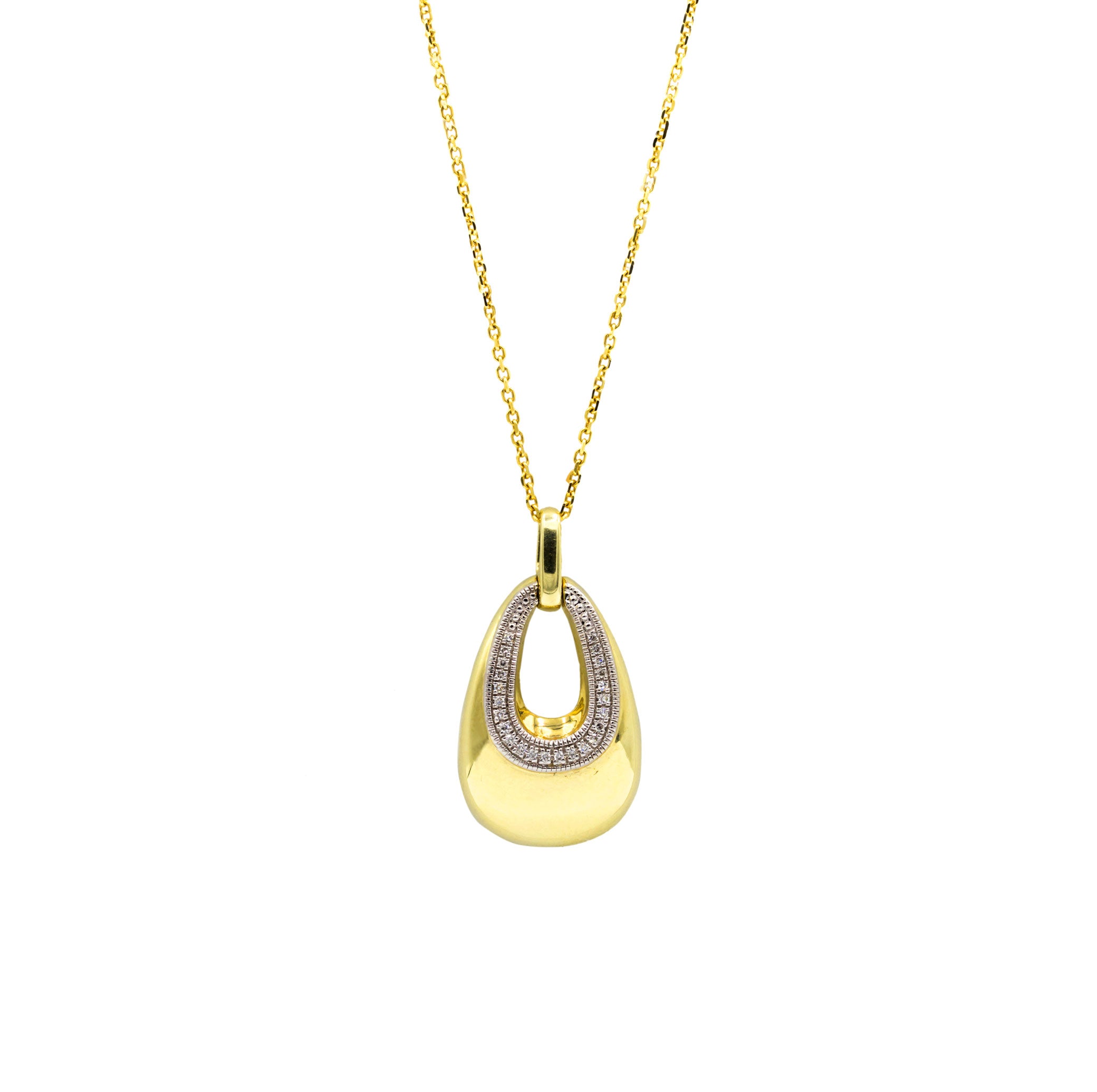 Effortless elegance meets modern design in this stunning 14k yellow gold pendant. Sculpted in a smooth teardrop silhouette and accented with 0.06 carats of GH SI-quality diamonds, this piece captures light from every angle — adding just the right touch of sparkle to your everyday or evening look.