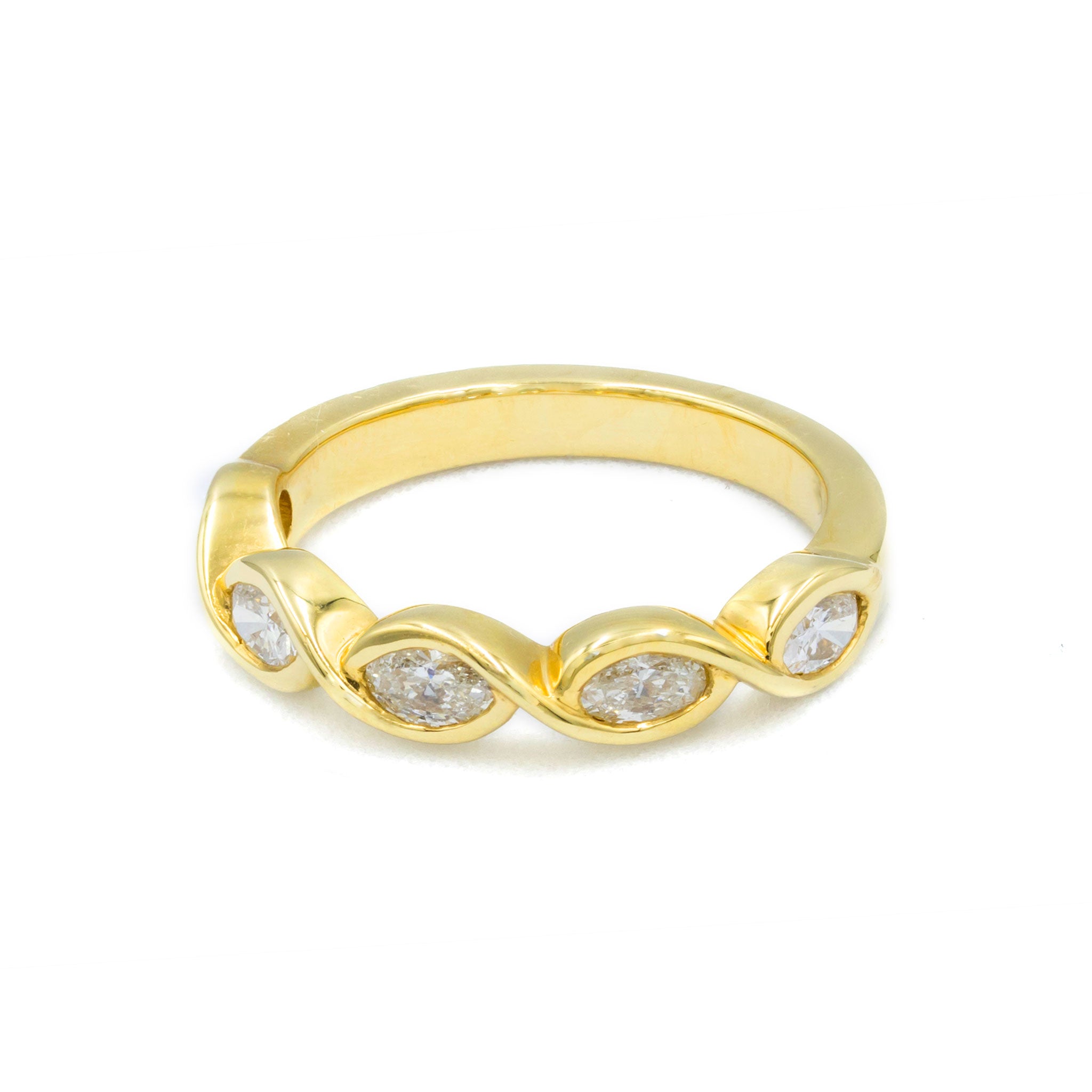 • 0.74 cts of bezel set marquise cut diamonds of GH SI quality