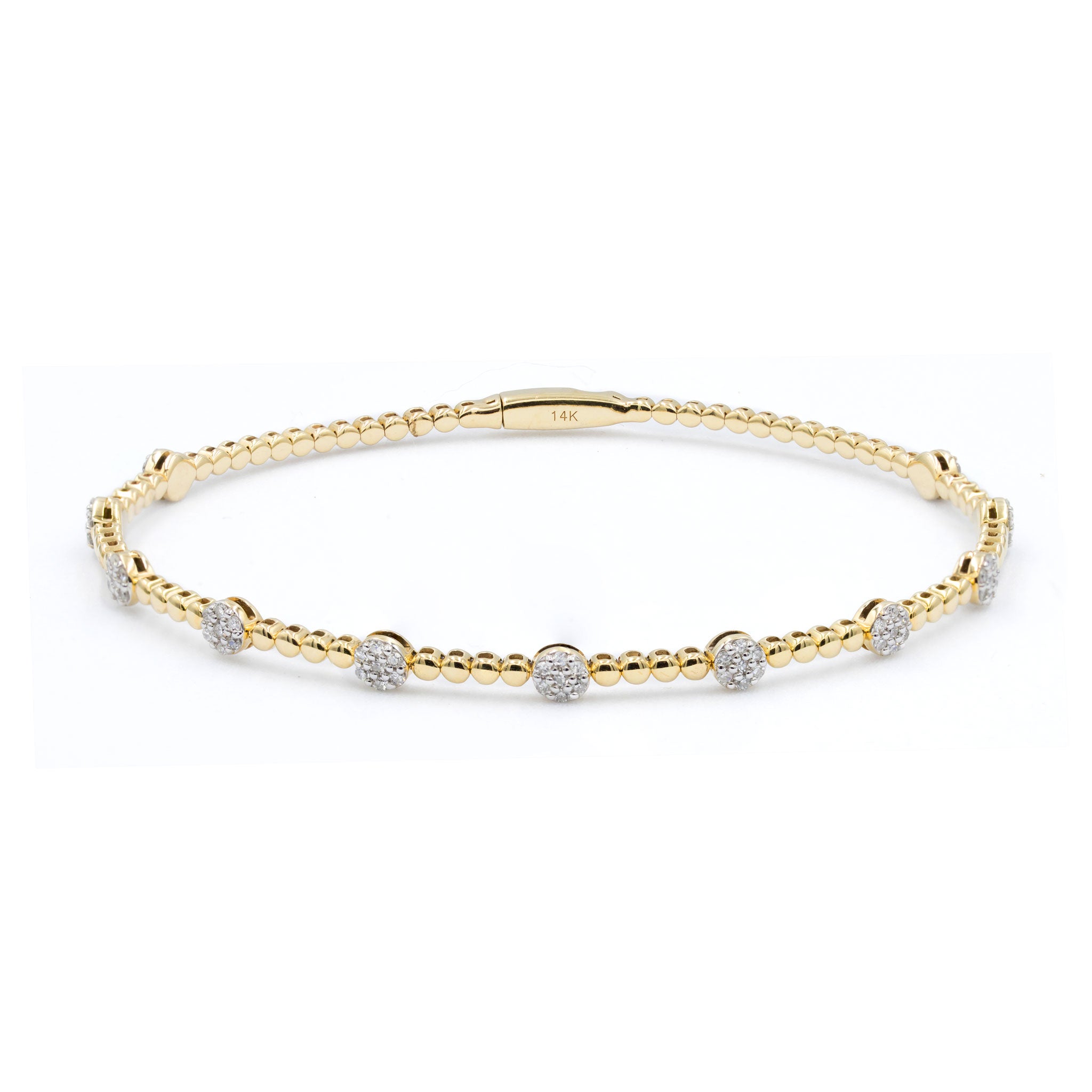Delicate yet striking, the Radiance Beaded Diamond Bangle is a piece that shines with effortless charm. Crafted in 14K yellow gold, its polished beadwork is accented by 0.40 carats of pavé-set diamonds, adding a refined sparkle that catches the light with every movement.
