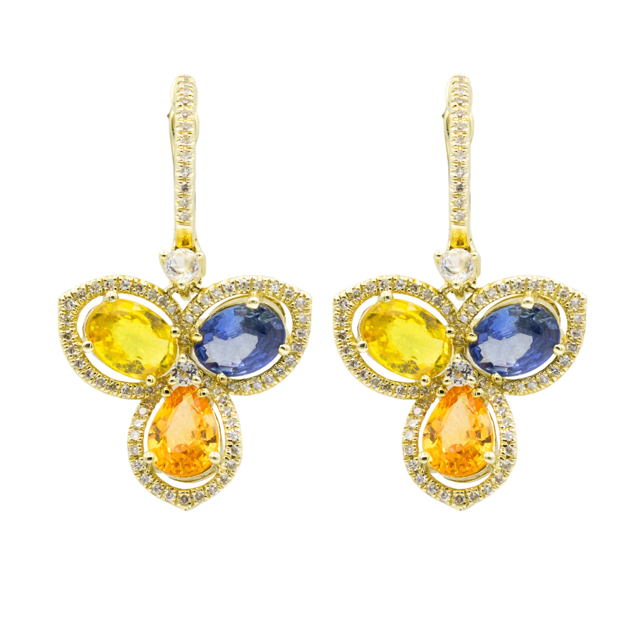 A radiant blend of 5.60 carats of multi-colored sapphires and 0.38 carats of brilliant diamonds shimmer in 14k yellow gold. Each stone reflects joy, harmony, and the courage to express your true self.