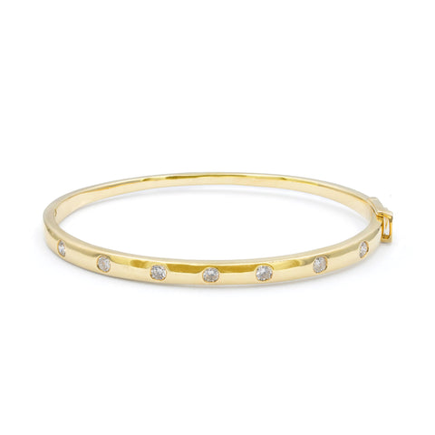 Timeless and versatile, the Classic Bezel Bangle is designed to elevate your everyday style. Crafted in 14K yellow gold, it features seven bezel-set natural diamonds totaling 1.04 carats in GH...