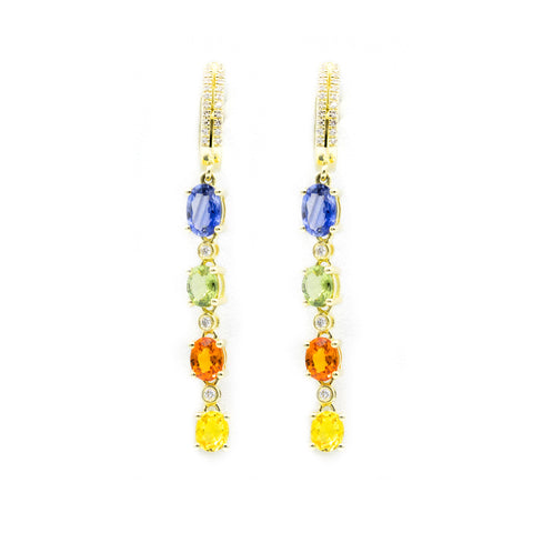 Vibrant, graceful, and full of light — these 14k yellow gold drop earrings are a true celebration of color and craftsmanship. Featuring 8 exquisite multi-colored sapphires totaling 3.90 carats, and...