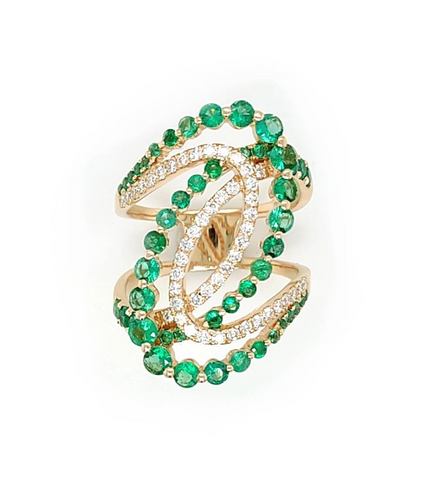 Bold, fresh, and endlessly captivating—the Emerald Embrace Ring is a modern masterpiece. Sculpted in 14k yellow gold, its openwork design wraps gracefully around the finger, accented by 1.24 carats of...