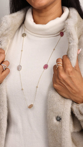 On back order. Please reach out to info@maharanijewels.com or 604.646.4543 to inquire about the exact eta. Vivid and luminous, the Sapphire Slice Long Necklace is a celebration of natural color...