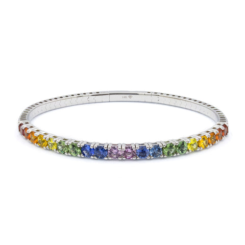 A vibrant reimagining of a timeless classic, the Rainbow Sapphire Flex Bangle infuses joyful color into a sleek and versatile design. Handcrafted in 14K white gold and set with 5.70...