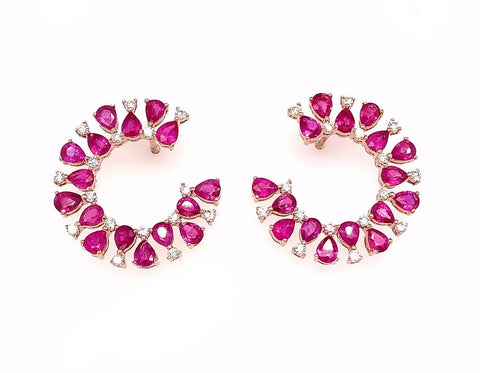 A celebration of color and craftsmanship, the The Ruby Crescent Earrings are designed to dazzle. Featuring 5.83 carats of richly hued natural rubies in pear and oval shapes, each gemstone...